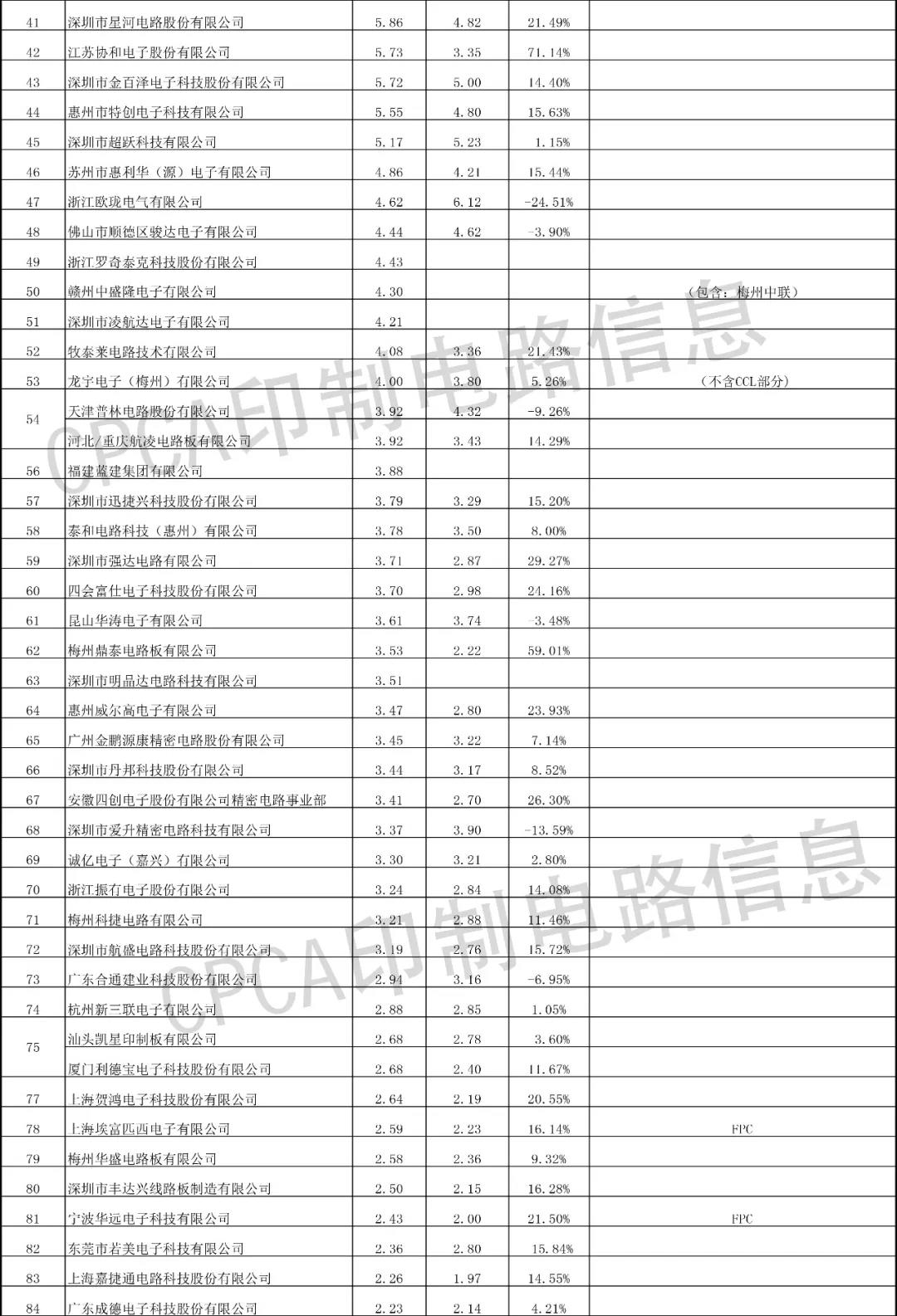 注:排行榜數據來源于CPCA印制電路信息