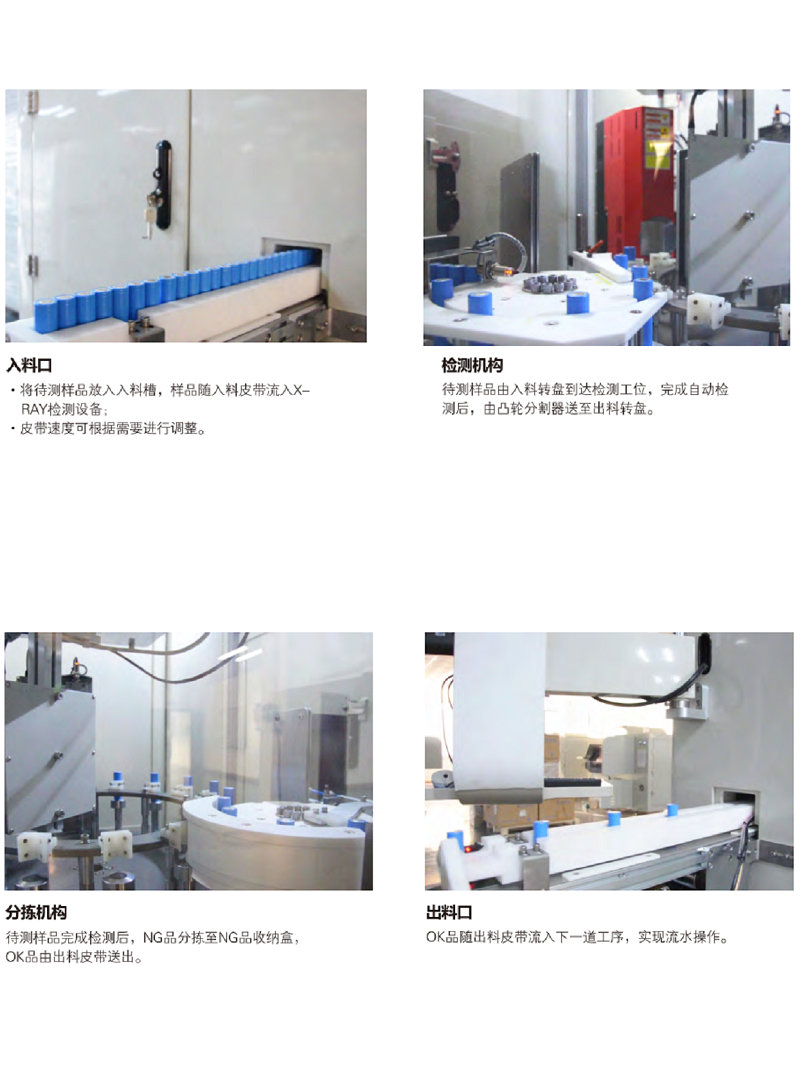 1、全自動(dòng)檢測(cè),自動(dòng)檢測(cè)判斷,自動(dòng)分檢良品與不良品。