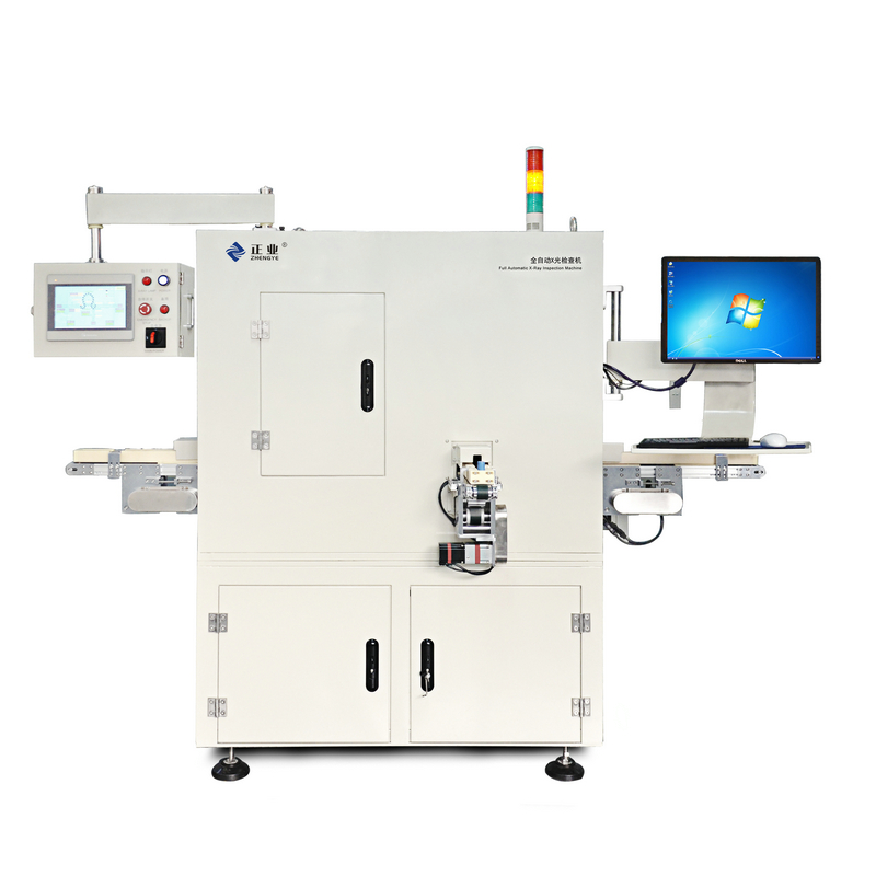 正業科技參選產品為自主研發的拳頭產品全自動X光檢查機,對鋰電池進行無損檢測,是一款高效、專業、高品質的鋰電檢測設備。該設備通過X-RAY發生器發出X射線,穿透電芯內部,由圖像增強器接收X射線,將其轉換成可見光后經相機成像和拍照,通過相關軟件對圖像進行處理并自動分析和判斷,確定良品和不良品,并將不良品挑選出來,可配置自動上下料機。
