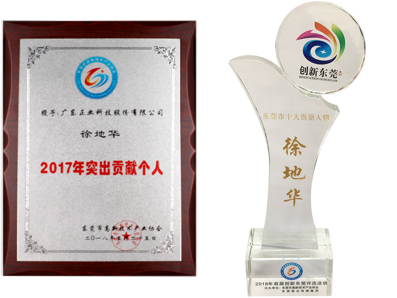 徐董事長曾榮獲2018年度東莞市十大創新人物、2017年度東莞十大經濟人物和2017年度突出貢獻個人等榮譽獎項,這對徐董事長的研發創新和貢獻成果給予了高度的肯定和評價。