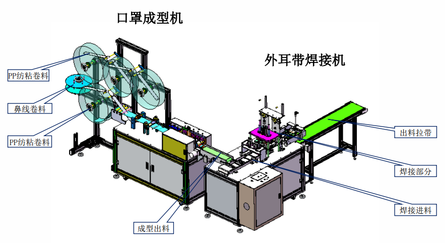 高速平面耳帶式口罩生產(chǎn)線(一拖一)外觀圖