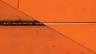 CO?激光(左)與 UV 激光(右)的切割槽比較