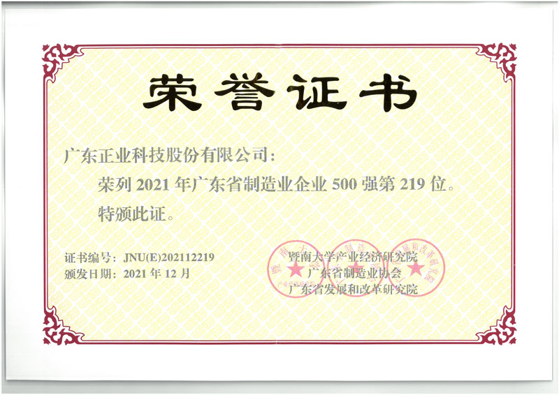 會(huì)上,主辦方發(fā)布了“2021廣東省制造業(yè)500強(qiáng)企業(yè)”名單。正業(yè)科技憑借卓越的技術(shù)能力、過(guò)硬的綜合實(shí)力,與華為、正威、富士康、美的等知名企業(yè)一同入選,榮列廣東省制造業(yè)企業(yè)500強(qiáng)第219位。