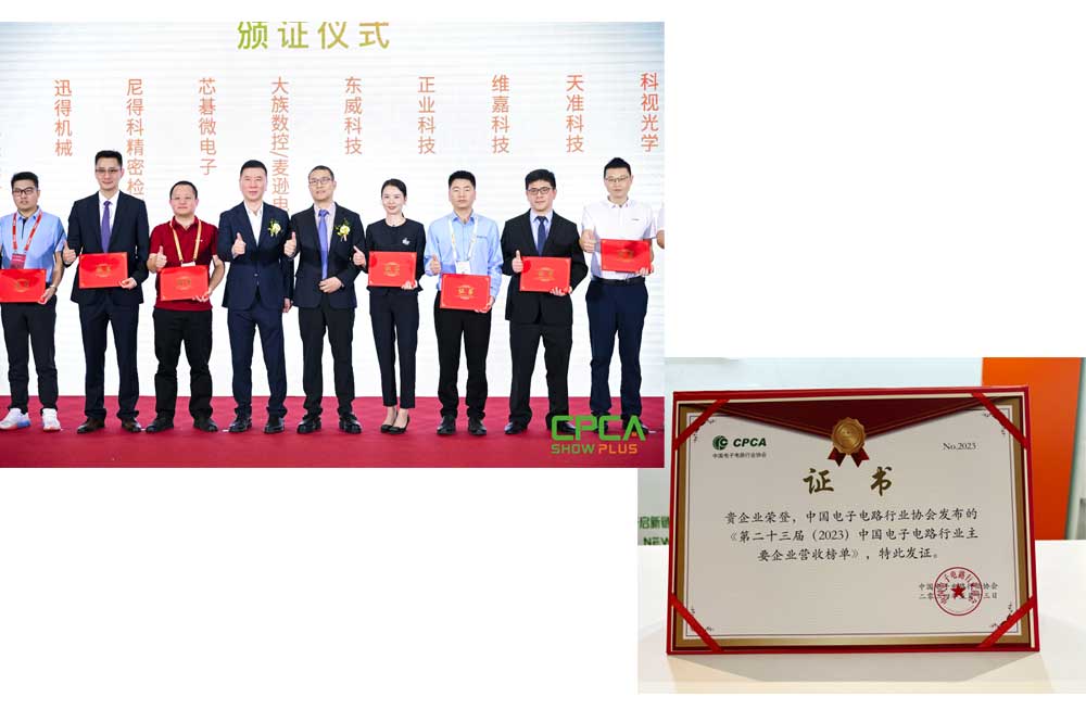 此外,正業(yè)科技榮登中國(guó)電子電路行業(yè)協(xié)會(huì)發(fā)布的《第二十三屆(2023)中國(guó)電子電路行業(yè)主要企業(yè)營(yíng)收榜單》,特此發(fā)證。