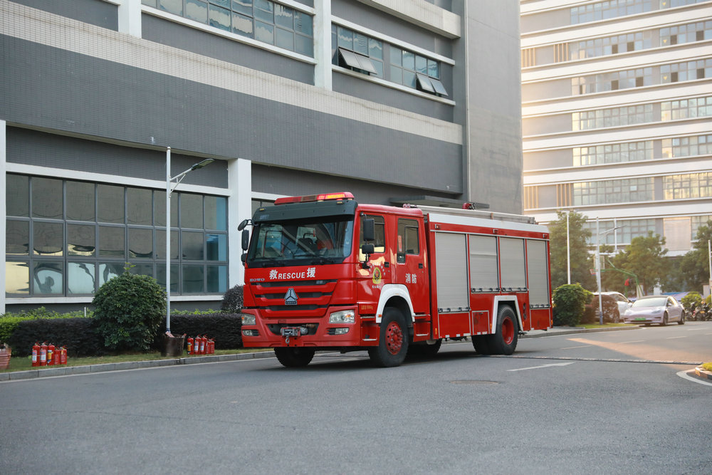松山湖消防大隊(duì)接到模擬報(bào)警后,迅速到達(dá)現(xiàn)場,在確認(rèn)起火地點(diǎn)后,立即連接水帶、啟動(dòng)滅火設(shè)備;滅火組、搜救組等小組各司其職,有序開展滅火救援行動(dòng)。