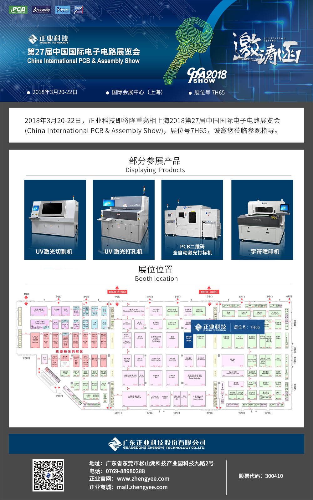 第27屆中國國際電子電路展覽會將于2018年3月20-22日在上海國際會展中心隆重開展,廣東正業科技股份有限公司(以下簡稱正業科技)將參加這次展會。